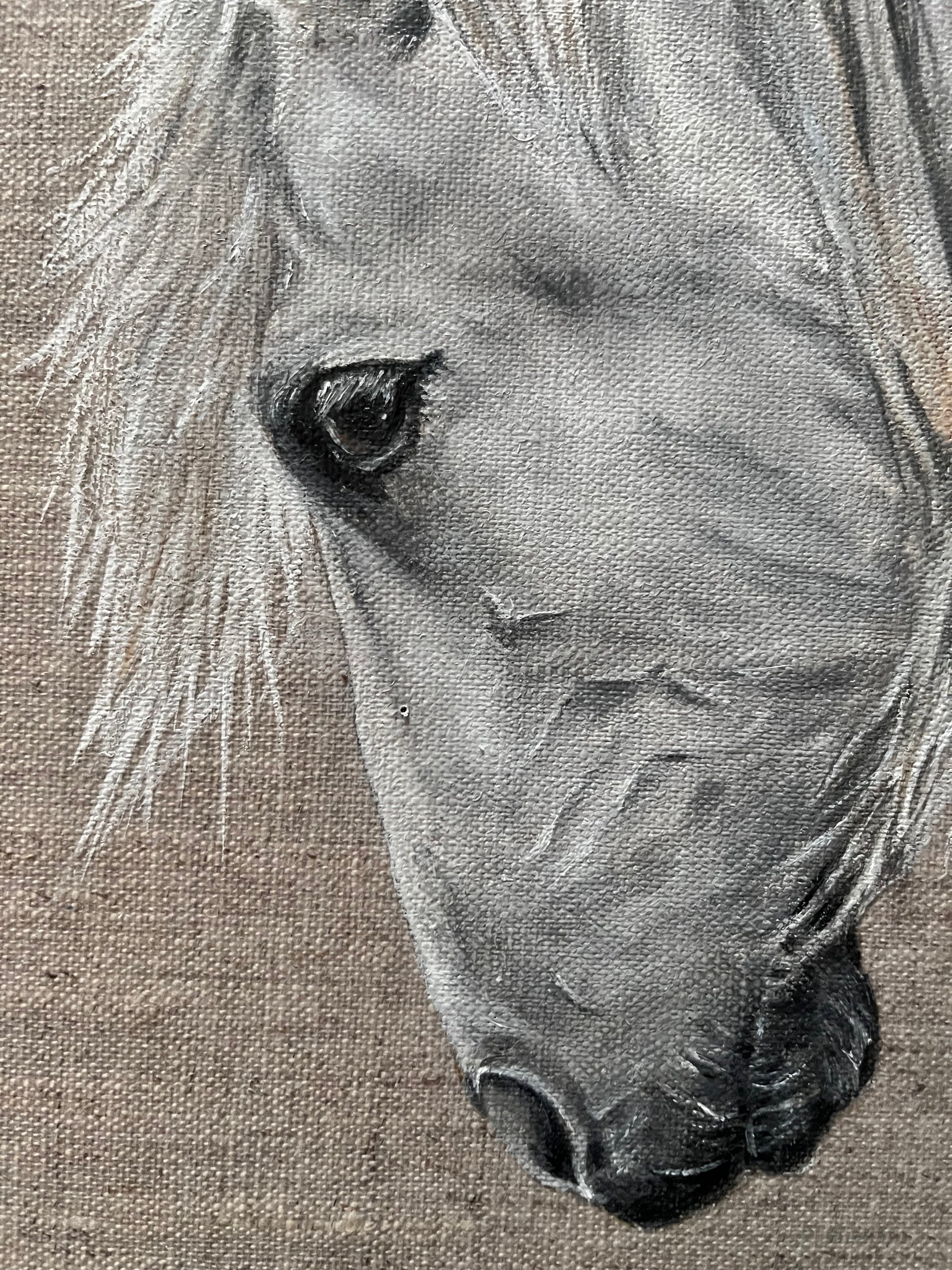 Painted with professional grade oil paints on a beautiful linen canvas panel. There is a slight thread on the canvas, this is due to the unique material of the canvas and I have included a close up.. Can be hung directly or in a cradled tray frame.